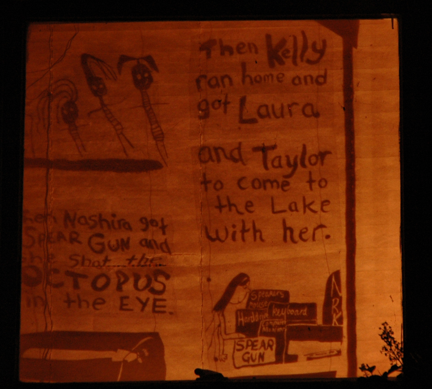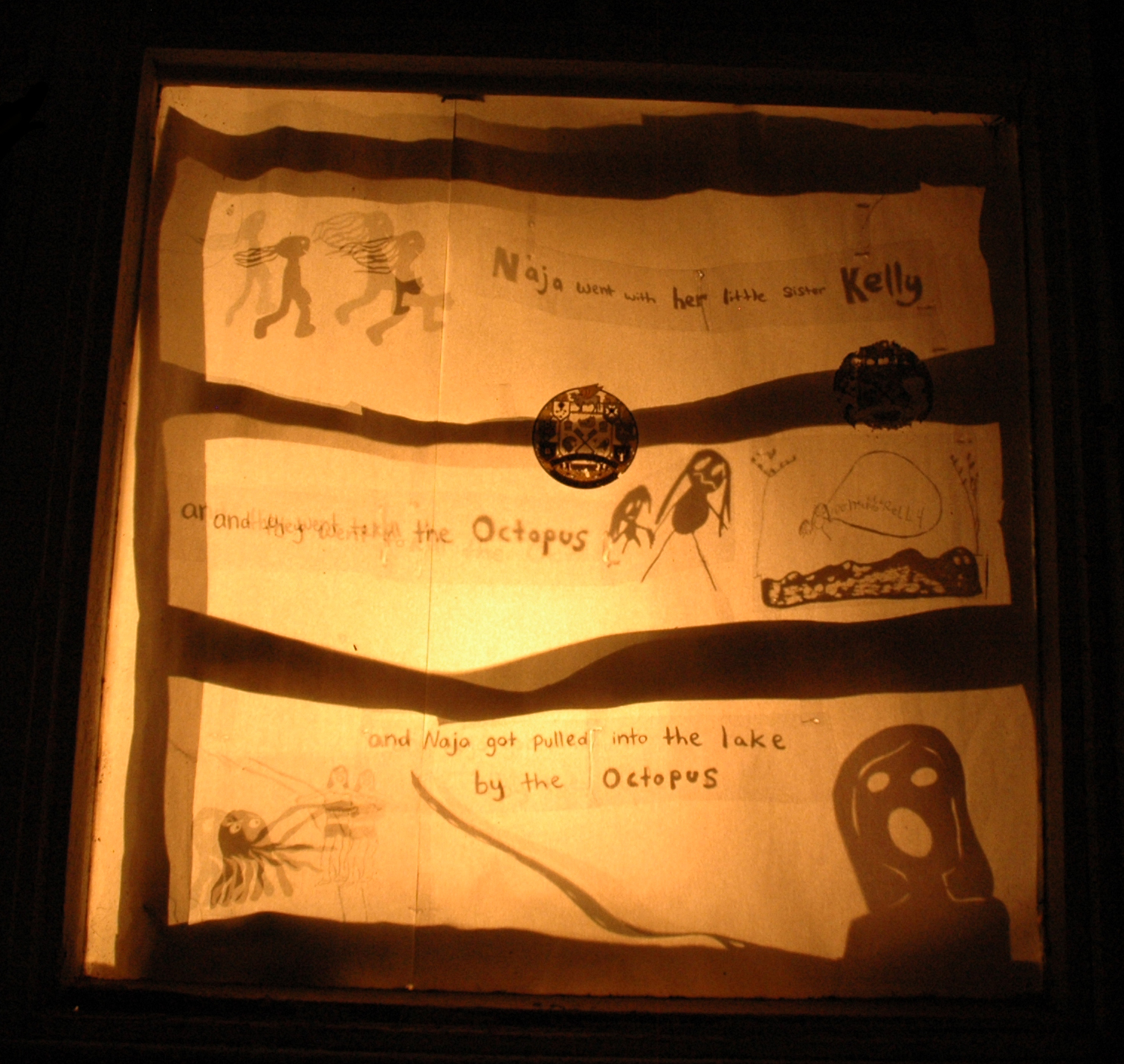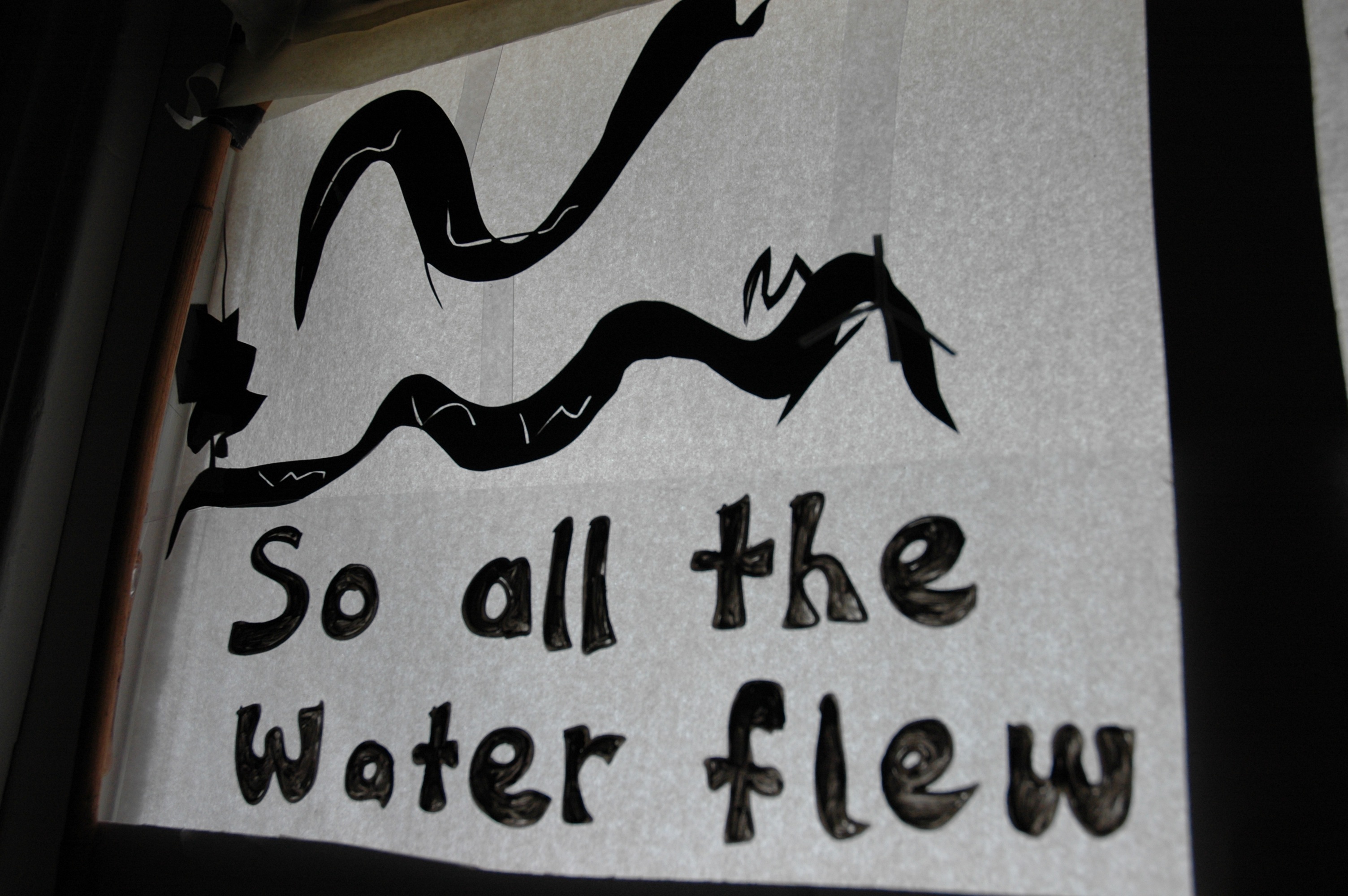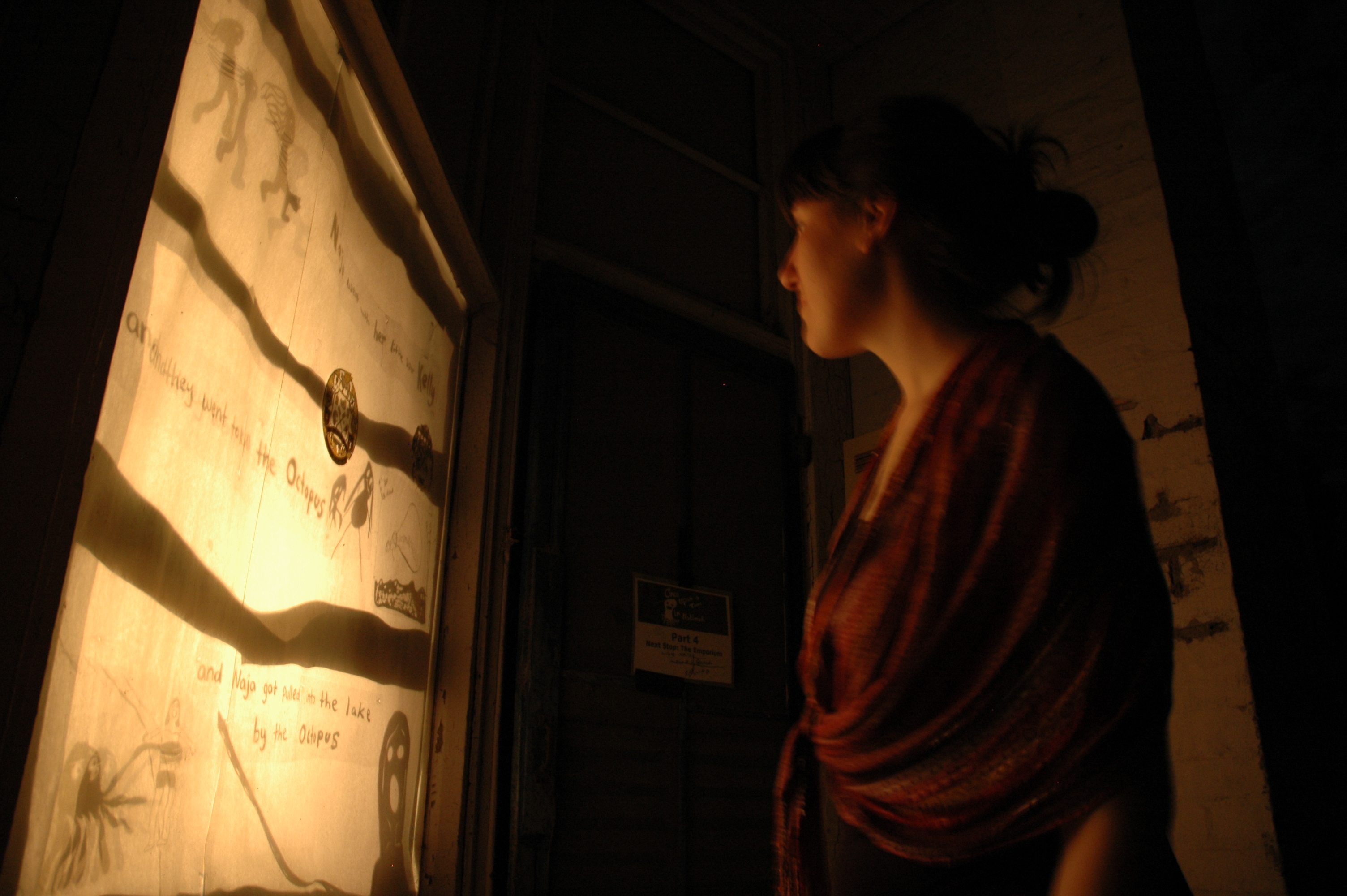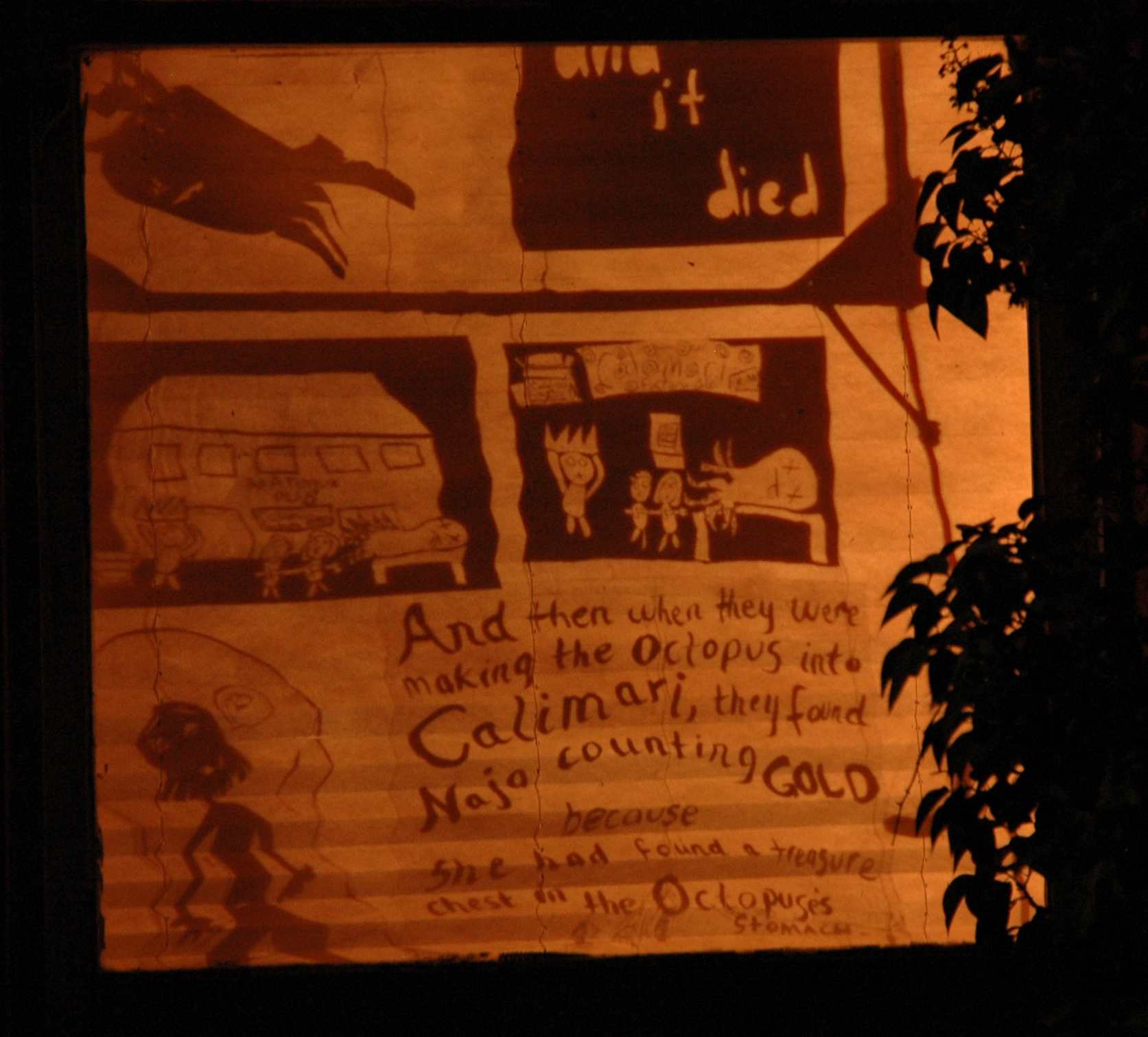 Together with the children of Natimuk, Hannah worked to create and illustrate the story of a terrible flood that completely covers the town of Natimuk. The public showing of the story was realised as a shadow installation in the windows of private homes around the town.